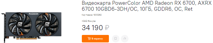 Если вы скопили всего 34 тысячи, то оптимальным вариантом будет Radeon RX 6700. Видеокарта довольно спорная и изначально предлагалась исключительно в качестве майнерского решения. Время шло, шахтёры перестали быть движущей силой рынка видеокарт, а в итоге сегодня этот графический чип стал чуть ли не самым выгодным на рынке. Если попытаться проводить параллели, то Radeon RX 6700 максимально близка к GeForce RTX 3070, но стоит дешевле. Отличный выбор за разумные деньги.