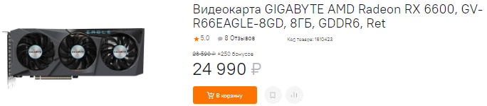 Если вы хотите купить видеокарту не дороже 25 тысяч рублей, то оптимальным вариантом станет Radeon RX 6600. Скорости достаточно для любых игр в разрешении 1080р, а технология FSR и вовсе позволит поиграть в 2К. Масштабирование нравится не всем, но у него есть определённые преимущества. Ну а тот факт, что во время прохождения некоторые шероховатости глаз перестаёт замечать, открывает перед геймерами новые перспективы.