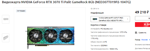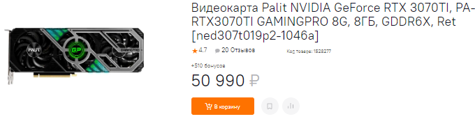 Со стороны зелёного лагеря за 50 тысяч доступна GeForce RTX 3070 Ti. Мы бы не стали подвергать критике данный графический чип, но производительность его ощутимо ниже Radeon RX 6800 XT. Пожалуй, GeForce RTX 3070 Ti можно считать конкуренткой для Radeon RX 6800, но и здесь преимущество на стороне красных, ведь видеокарта AMD имеет не только в 2 раза больше видеопамяти, но и намного быстрее в реальных играх. Ну а фанатам NVIDIA только и остаётся, что рассказывать о невероятной технологии трассировки лучей. Оставим этих ребят со своими лучиками, хотя GeForce RTX 3070 Ti вполне годный продукт, просто в сравнении с конкурентами из красного лагеря он проигрывает по всем направлениям.