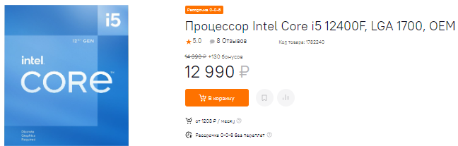 Ну или купите Core i5-12400F за 13 тысяч рубликов. Увы, но бюджетные камни Intel дешевеют очень медленно, поэтому вам придётся раскошелиться. Ну а в награду вы получите очень неплохой процессор, способный раскрыть потенциал видеокарты уровня GeForce RTX 3060. К более дорогой видеокарте лучше подобрать другой камень, хотя потенциальные покупатели Core i5-12400F и без нас всё это прекрасно понимают. Можно присмотреться к Core i5-11400F. Этот процессор почти не уступает указанному выше, но точно окажется дешевле, ведь идёт вместе с системой охлаждения. Для тех, кто считает каждую сотню рублей, такой выбор может быть предпочтительнее.