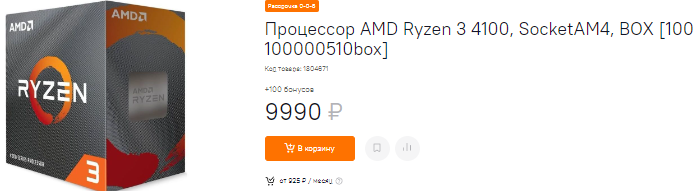 Ryzen 3 4100 перешагивает за 10 000 рублей, что позволяет собрать игровую систему начального уровня без больших инвестиций. Процессор неплохо показывает себя в играх, поскольку построен на архитектуре Zen 3. Тактовая частота оставляет желать лучшего, а в наличии всего 4 ядра. Что же, если вы решили экономить, то не стоит удивляться, ведь за 8 ядер придётся выложить гораздо дороже.