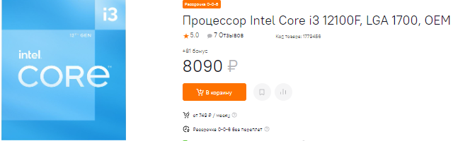Ну и завершим на Core i3-12100F. Это самый бюджетный камень 12-го поколения на архитектуре Alder Lake, а значит он автоматически открывает вам двери в мир компьютерных игр. Берите недорогую видеокарту по вашим финансам, а сам камень покажет себя с лучшей стороны. Кстати, уже давно современные процессоры тянут все стандартные задачи без зависаний, поэтому переживать о нехватке производительности у Core i3-12100F нет никакой нужды. Мы рекомендуем не тратиться на материнскую плату, ведь камень не имеет разгонного потенциала. Нет здесь и встроенной графики, а значит вы должны учитывать эти особенности перед покупкой. Если правильно распределить бюджет, избегая переплат на материнскую плату и оперативную память, то можно собрать неплохой скоростной компьютер для начинающего геймера.