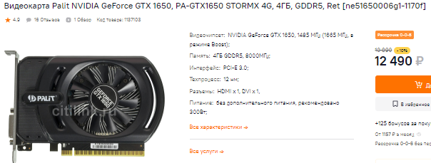 За 11 тысяч вас поджидает GeForce GTX 1630. Это самая бюджетная видеокарта, которая была выпущена силами NVIDIA за последние годы. Судя по всему, на складе завалялось очень много бракованных чипов, а релиз GeForce GTX 1630 представляет собой попытку выгодно пристроить никому не нужные платы. Похвастать данной видеокарте нечем, но и она неплохо тянет шутеры. Самое главное не ждать от GeForce GTX 1630 чудес, ведь здесь 64-битная шина и минимальная производительность.