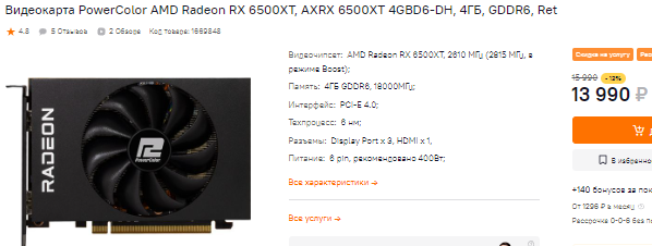 До 14 тысяч подешевела Radeon RX 6500 XT. Ещё совсем недавно купить такую видеокарту дешевле 17 тысяч рублей было нереально, ну а здесь у нас настоящий подарок судьбы. Видеокарта имеет ту же проблему, что и Radeon RX 6400, но гораздо мощнее, поэтому здесь наблюдается некоторое падение на системах без поддержки PCIe 4.0. Если вы искали видеокарту, которая не только недорогая, но и позволит вам играть даже в новые игры, то берите Radeon RX 6500 XT. Особенно интересна технология FSR. Например, если у вас разрешение монитора 2К, то вы можете играть без проблем даже здесь, а система сделает так, что ваши глаза не будут напрягаться. Некоторые геймеры уверяют, что масштабирование ужасно мылит картинку. Мы предлагаем этим ребятам брать видеокарту за 100 000 рубликов, где нет подобных проблем.