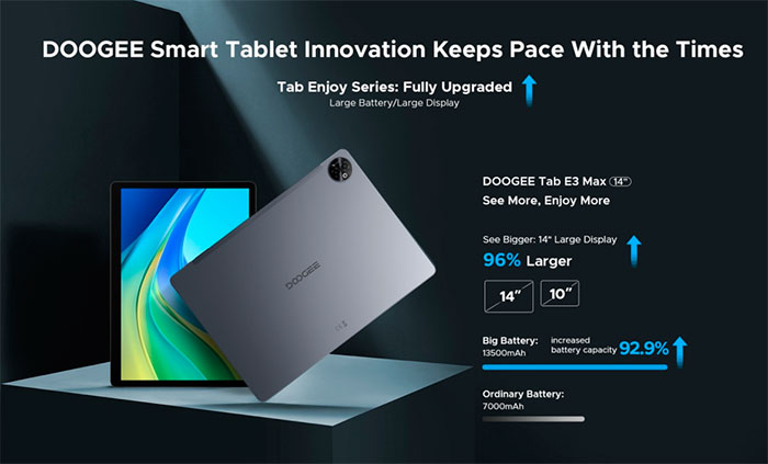 Планшеты с большой диагональю экранов становятся всё более востребованными в работе, обучении и во время отдыха. Модели, которые предлагают правильное сочетание размера, скорости и цены, остаются актуальными на протяжении длительного времени. Серия планшетов DOOGEE Tab Enjoy, в состав которой входят Tab E3 Pro и Tab E3 Max, продолжает быть доступной для приобретения.