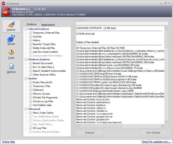 CCleaner 1.25.201 (0.5 MB, freeware).