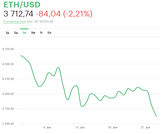 Получается, что сегодня возврат инвестиций в ферму по добыче Эфира крайне сомнителен, но мы бы не стали говорить, что всё безнадежно. Дело в том, что никто не исключает подорожания криптовалют в начале 2022 года. На момент написания данного материала курс Эфира снизился до 3700 долларов за одну монетку.
