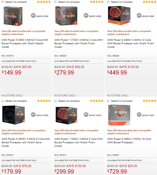 Так, помимо известной онлайн-площадки Amazon, достаточно заманчивые цены на десктопные процессоры Ryzen третьего поколения готов предложить ещё один заморский ритейлер, а именно сеть магазинов Micro Center. Наибольшим снижением стоимости может похвастаться 12-ядерный Ryzen 9 3900X, потерявший целых $150 по сравнению с ценой на старте продаж и теперь предлагающийся за $450, следом за ним следует 8-ядерный Ryzen 7 3800X, ставший доступнее на $100 и в настоящий момент оценённый в $300. На третьем месте расположился 6-ядерный Ryzen 5 3600X ($180), упав в цене на $70, а его менее разогнанный собрат в лице Ryzen 5 3600 стал дешевле на $50, как и 8-ядерный Ryzen 7 3700X – теперь эти модели можно приобрести за $150 и $280 соответственно. При этом наиболее скромное снижение цены испытал на себе флагман настольной линейки в лице Ryzen 9 3950X — процессор подешевел всего на $20 и теперь оценён в $730.