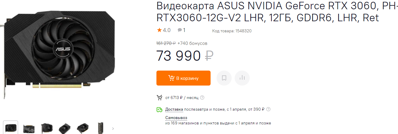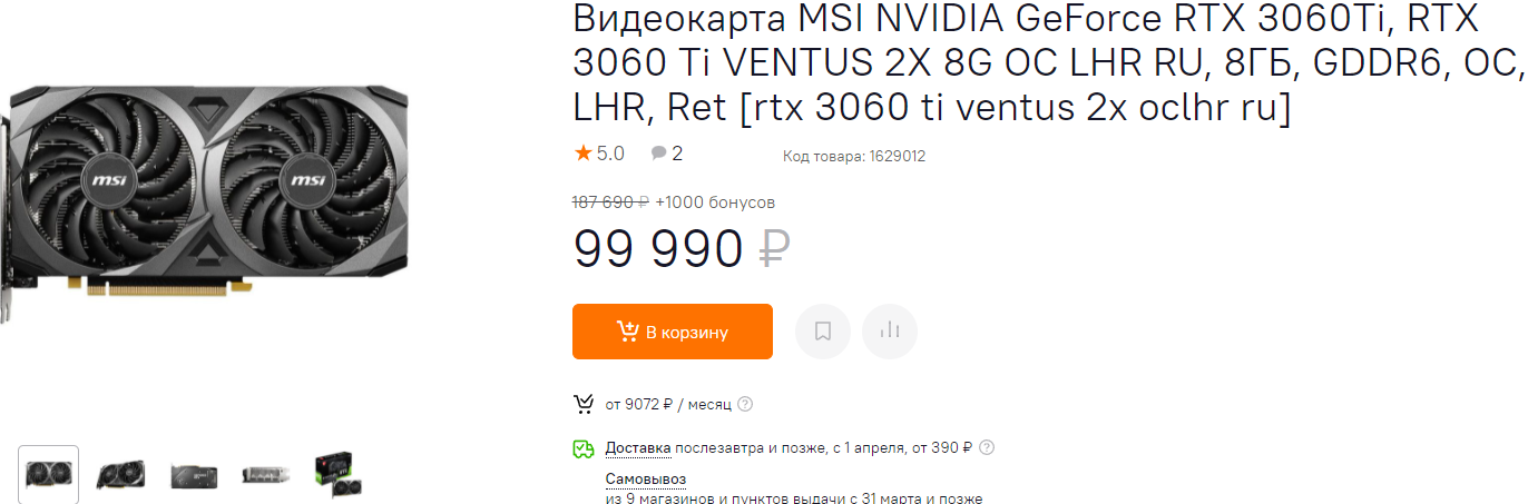 Ощутимо дешевле GeForce RTX 3060. На самом деле это прекрасная видеокарта, способная много лет подряд радовать любителей компьютерных игр высокими настройками в разрешении 2К. В некоторых случаях разрешение можно будет даже поднять до 4К, но здесь придётся сильно снижать качество картинки.