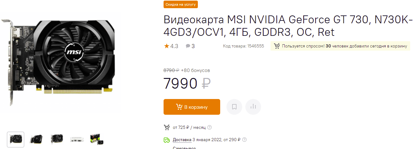 Именно так, ведь 30 человек заинтересовались GeForce GT 730. В данном случае у нас обычная затычка, которая не способна запускать большинство игр даже в 720р. Единственным плюсом GeForce GT 730 является её низкая цена, ведь дешевле 8000 рублей вы не сможете найти ничего более простого для вывода изображения на экран. Кстати, GeForce GT 730 умеет запускать старые игры 10-летней давности, что будет кстати для любителей ретро.