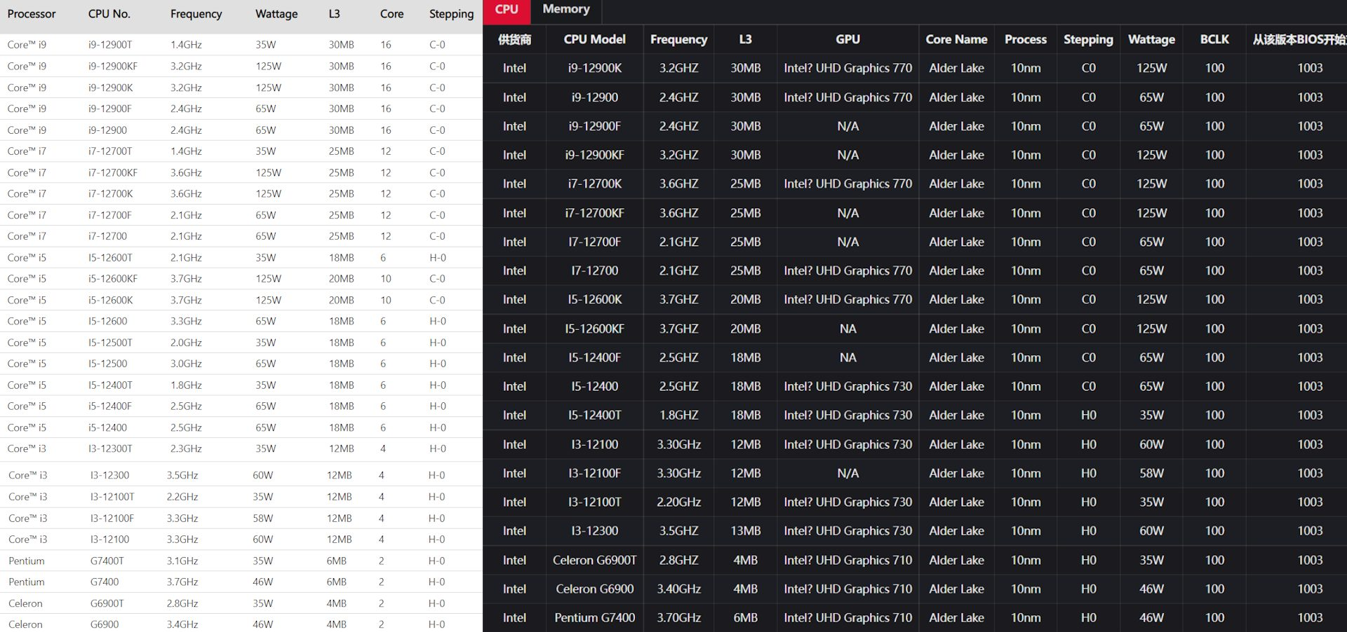 4 января Intel представит линейку процессоров Alder Lake без разблокированного множителя. На этот счёт курсирует достаточно много различных спекуляций в прессе, ведь мы видели несколько тестов в синтетике, поэтому оценить реальную производительность в играх почти невозможно. Вчера большую утечку данных допустили компании ASUS и COLORFUL, опубликовав спецификации своих материнских плат. Поскольку утечка случилась сразу из двух источников, то ей уже можно верить.