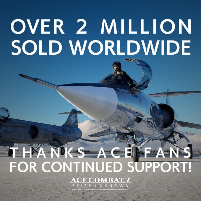 У разработчиков и издателей авиасима Ace Combat 7 Skies Unknown сегодня пусть и небольшой, но всё же праздник: как сообщила компания Bandai Namco, тираж проекта преодолел отметку в два миллиона экземпляров. Речь идёт о продажах на всех платформах по всему миру.