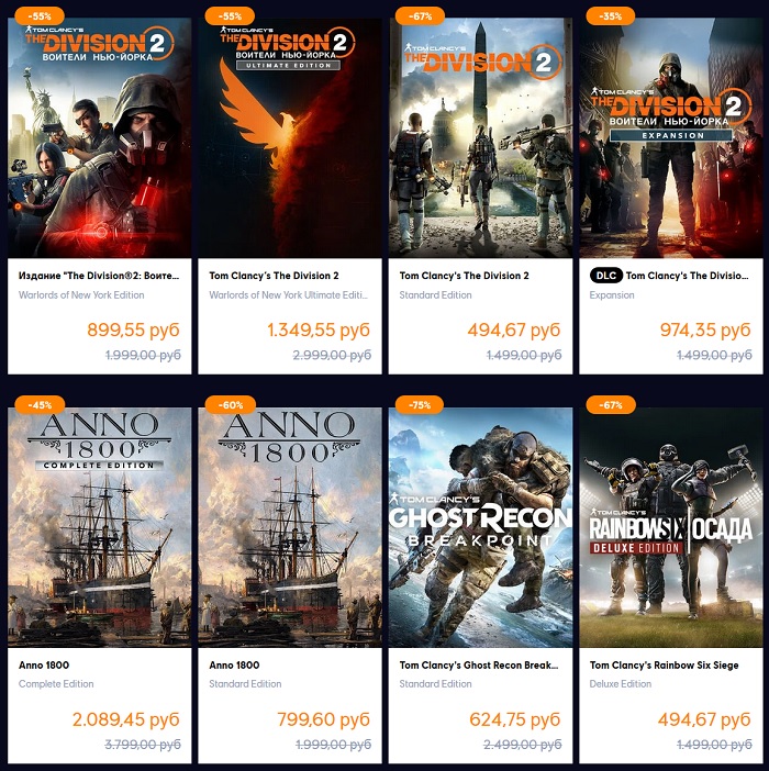 - The Division 2 со скидкой в -67 % — за 494 рубля вместо номинальных 1 499 рублей.