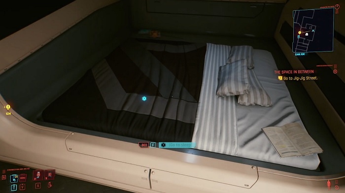 Практически сразу после релиза Cyberpunk 2077 игроков начал мучать вопрос, в какой всё-таки позе спит главный герой в своей квартире. Дело в том, что при виде от первого лица возникает ощущение, что Ви ложится на кровать поперёк, свесив с неё на пол большую часть тела, а также полностью игнорирует подушки.