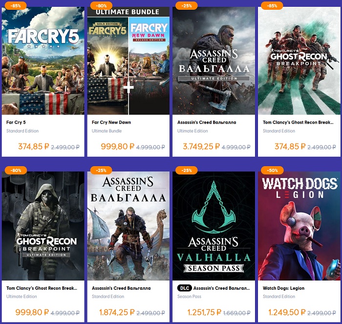 - Watch Dogs Legion за 1 249 рублей (скидка 50 %);