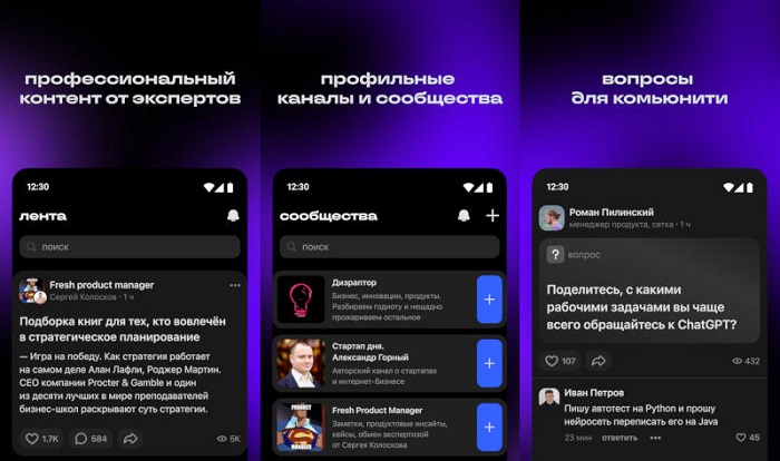 Платформа предлагает объединение в профессиональные сообщества с учётом места работы, специализации и отрасли участников. В планах развития — трансформация указанных сообществ в закрытые группы, где возможен обмен опытом и взаимопомощь.