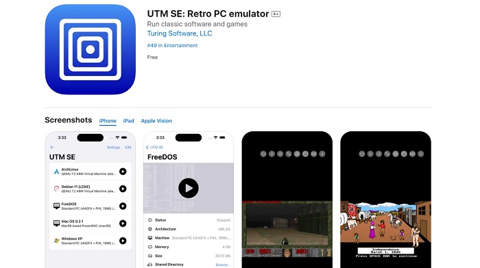 UTM SE — это не просто эмулятор, а настоящий портал в прошлое. Он открывает доступ к богатейшей библиотеке программ и игр, созданных для Windows (от XP до 11-й версии), а также к различным дистрибутивам Linux. На странице приложения в App Store даже упоминаются Mac OS 9.2.1 и DOS. Хотите вспомнить былые времена или познакомиться с историей компьютерных технологий? UTM SE предоставит вам такую возможность.