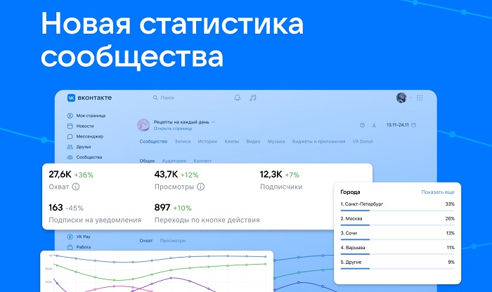 Социальная сеть «ВКонтакте» значительно расширила возможности для анализа эффективности контента, открыв авторам доступ к обновлённому разделу статистики. Новый интерфейс, доступный пока в веб-версии, а в будущем и в мобильных приложениях, отличается улучшенным дизайном и расширенной функциональностью. Он предоставляет подробные данные по всем типам публикаций: постам, видео, историям, клипам, товарам и даже эксклюзивному контенту для подписчиков VK Donut.