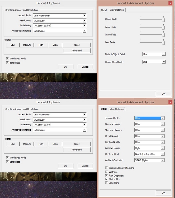 Итак, один из счастливчиков, которому удалось запустить PC-версию Fallout 4, выложил в Сеть скриншот, на котором запечатлён экран графических настроек игры. Как видим, игра использует специальный загрузчик, а экран графических настроек точь-в-точь повторяет соответствующий экран The Elder Scrolls V: Skyrim.