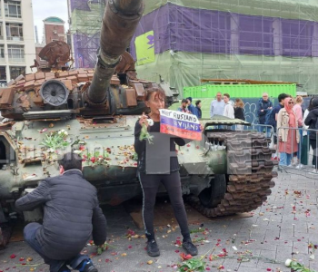 Жители Нидерландов осыпали подбитый российский танк Т-72 цветами