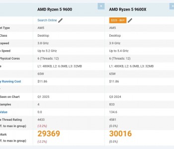Общая оценка AMD Ryzen 5 9600 в PassMark оказалась на 2,2% ниже, чем у 9600X