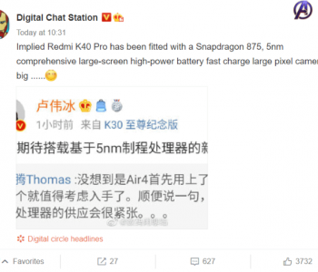 Redmi K40 Pro получит чипсет Snapdragon 875 и мощную быструю зарядку