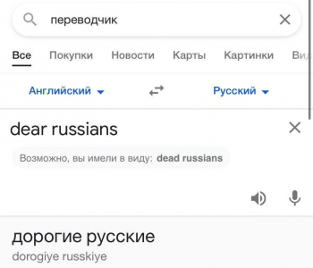 Google переводчик предлагает заменить "Dear Russians" на "Dead Russians"