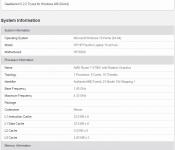 AMD Ryzen 7 5700U продемонстрировал свои возможности в Geekbench 5