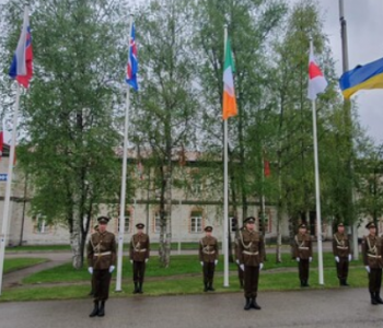 Украинский флаг был поднят в штаб-квартире организации, располагающейся в Таллине.