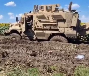 Американский броневик повышенной проходимости MaxxPro застрял в песке в лесополосе на Украине
