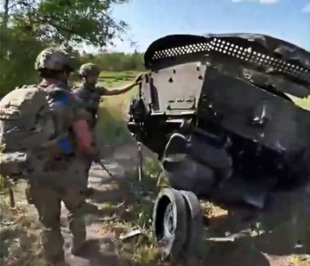 Боец ВСУ показал пережившую разрыв "тяжёлого" 152-мм снаряда, но вышедшую из строя БМП Bradley