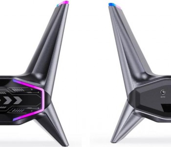 Устройство имеет абстрактный дизайн, напоминающий звездолет, и снабжено двумя вентиляторами охлаждения, расположенными по бокам.