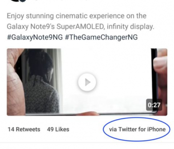 Записи на официальной странице Samsung Mobile NG в Twitter публикуются с iPhone
