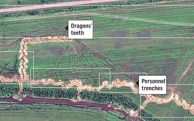Примерно с октября прошлого года, когда командование специальной военной операцией принял генерал Суровикин, Россия начала ударными темпами возводить вдоль линии боевого соприкосновения масштабные эшелонированные линии обороны, состоящие из минных полей, противотанковых рвов, окопов, а также бетонных пирамидальных заграждений, прозванных «зубами дракона». Всё это призвано если не остановить уже сейчас вовсю идущее украинское контрнаступление, то как минимум максимально его замедлить, дав тем самым российской артиллерии, авиации и противотанковым средствам ценное время для нанесения ударов.