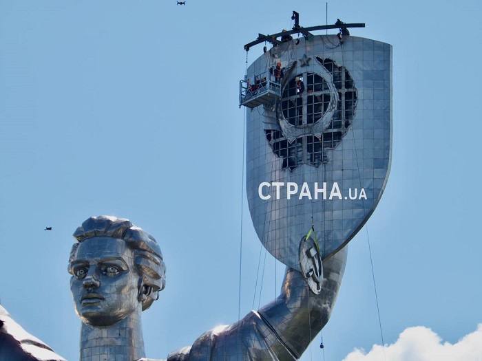 На Украине под предлогом вооружённого конфликта продолжается усиленная борьба с историей и здравым смыслом: с утроенной силой демонтируются памятники, хоть как-то связывающие Украину с российским/советским прошлым, переименовываются улицы, проспекты, станции метро, уничтожается «пророссийская» (просоветская) символика. Недавно украинские власти посягнули, казалось бы, на святое — на монумент «Родина-мать», с которого начали демонтировать герб СССР, дабы впоследствии заменить его на украинский «трезубец».