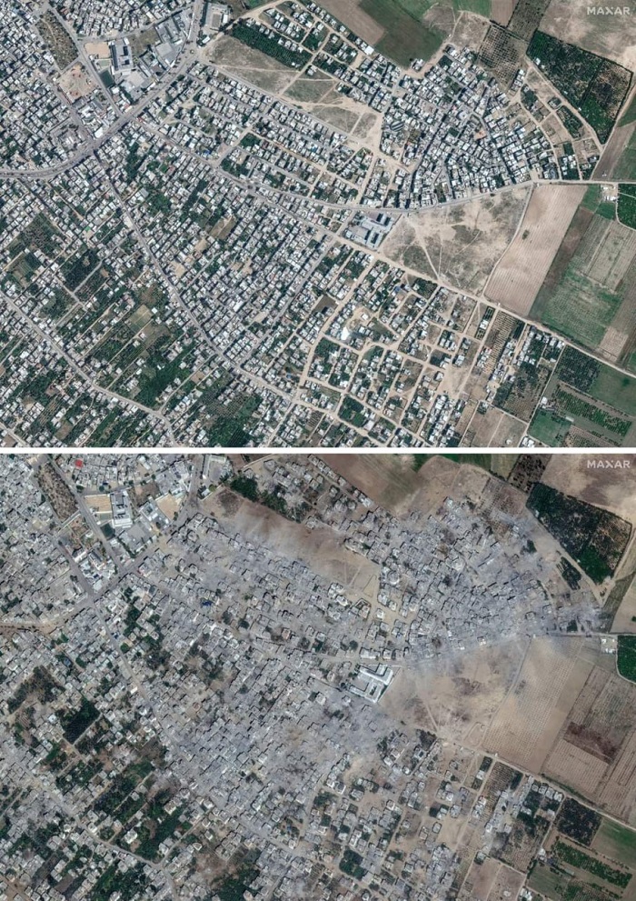 Авиаудары продолжаются ежедневно, и их последствия уже облетели весь мир, который, за исключением, конечно же, американских и подотчётных им европейских официальных лиц, глядя на них, осуждает неизбирательные удары по гражданским объектам сектора Газа. И вот, сегодня в Сети появились очередные кадры сектора Газа до и после начала израильских бомбардировок.