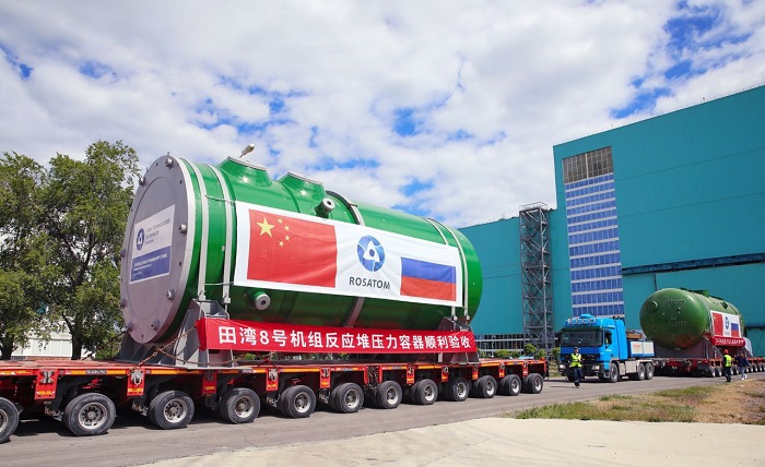 В частности, «Росатом» активно участвует в строительстве китайской атомной электростанции «Тяньвань», которая расширяется уже на четвёртую очередь. В рамках этого расширения АЭС «Тяньвань» будет укомплектована двумя дополнительными энергоблоками самыми мощными из выпускаемых в промышленных количествах российскими атомными реакторами ВВЭР-1200. И вот, «Росатом» сообщил о том, что отгрузил для восьмого (второго в четвёртой очереди) энергоблока АЭС «Тяньвань» корпус реактора и два парогенератора.