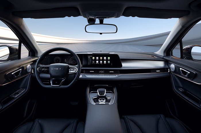 Интерьер Tiggo 5x High Energy в целом аналогичен китайской Omoda 5, но с новым селектором коробки передач и полностью чёрной отделкой салона. Российская Omoda C5 имеет другое оформление интерьера, в частности, отличаются центральный тоннель и дефлекторы обдува.
