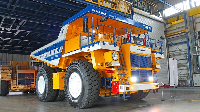 Титан-трудяга оснащается двигателем мощностью 1 600 л. с. и двумя топливными баками: криобаком для СПГ объёмом 1400 литров и баком для дизельного топлива объёмом 1 900 литров. Суммарно этот запас топлива позволяет БЕЛАЗ-7513W отработать 12-часовую смену без подзаправки. Что, как вы понимаете, дополнительно экономит время на самом процессе заправки.