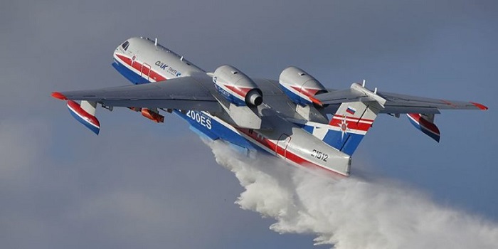 Напомним, что Бе-200 применяется при тушении лесных, торфяных и других крупных пожаров и стоит на службе Министерства по чрезвычайным ситуациям. Амфибией Бе-200 называется потому, что он «набирает» воду во внутреннюю полость на бреющем полёте (в режиме глиссирования) над водоёмом.